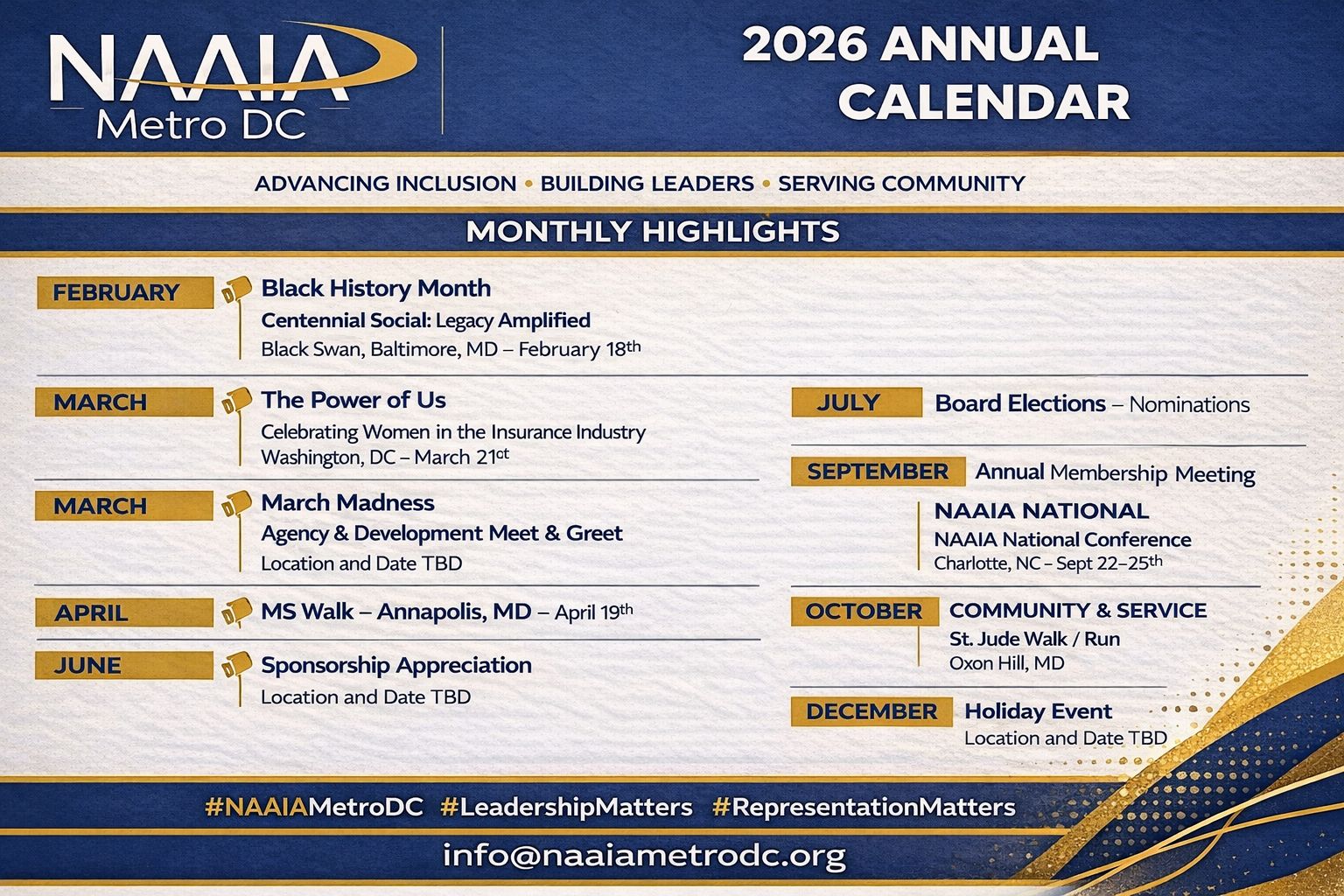 If you are building a career in insurance, Metro DC is one of the most influential places to do it. This region sits at the center of policy, innovation, and industry leadership, giving you access to conversations and opportunities that shape the future of our field. By joining NAAIA Metro DC, you step into a community that is committed to your visibility, your growth, and your long-term success. Here, you will find connection, purpose, and a network that is intentional about delivering tangible value to its members.